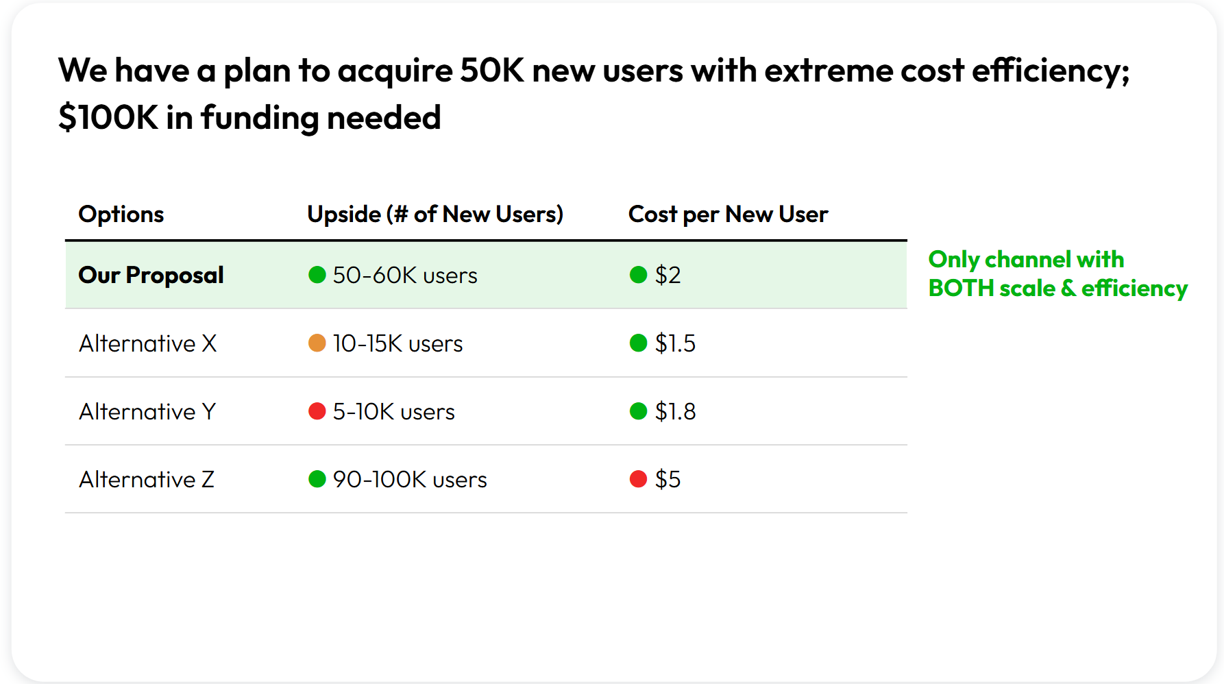 Because yes, while we want to secure the entire $100K budget? We also don't want this to be an all-or-nothing situation.