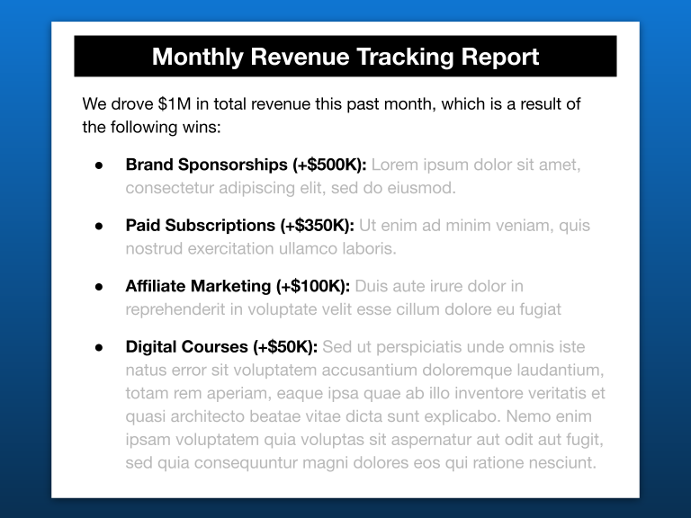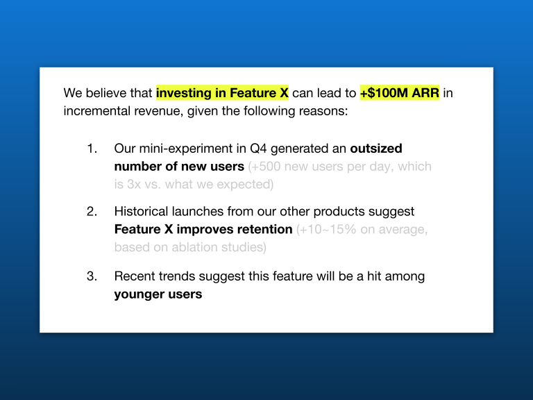 - Statement A: Feature X delivered $0.15M in revenue this year.