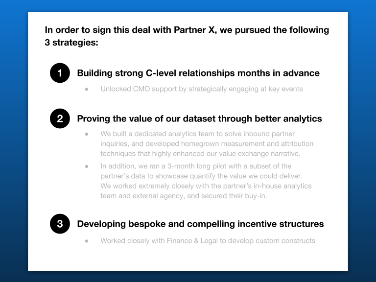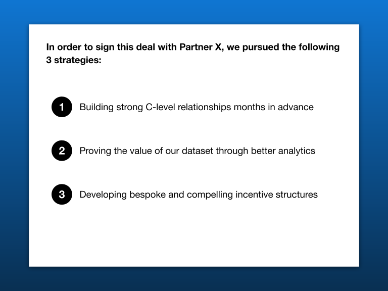 Based on the following slide, and without any other context β what do we think was the most important strategy that helped us sign the deal with Partner X?