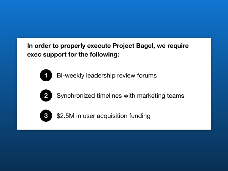 The facts are still there, but they're surfaced reactively by being embedded within a secondary section of your slide, instead of hijacking your key message.