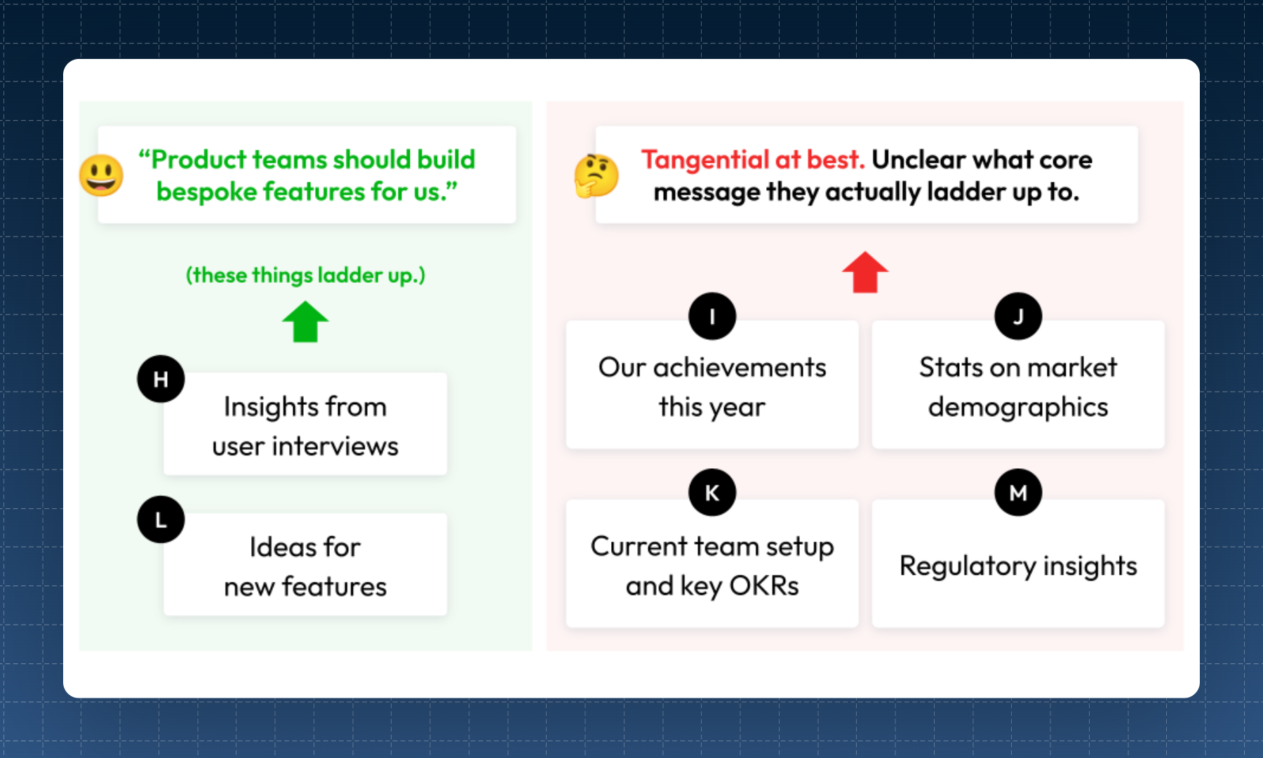 And in this case, most of the building blocks fail that litmus test β because they simply don't "ladder up" to the core message: