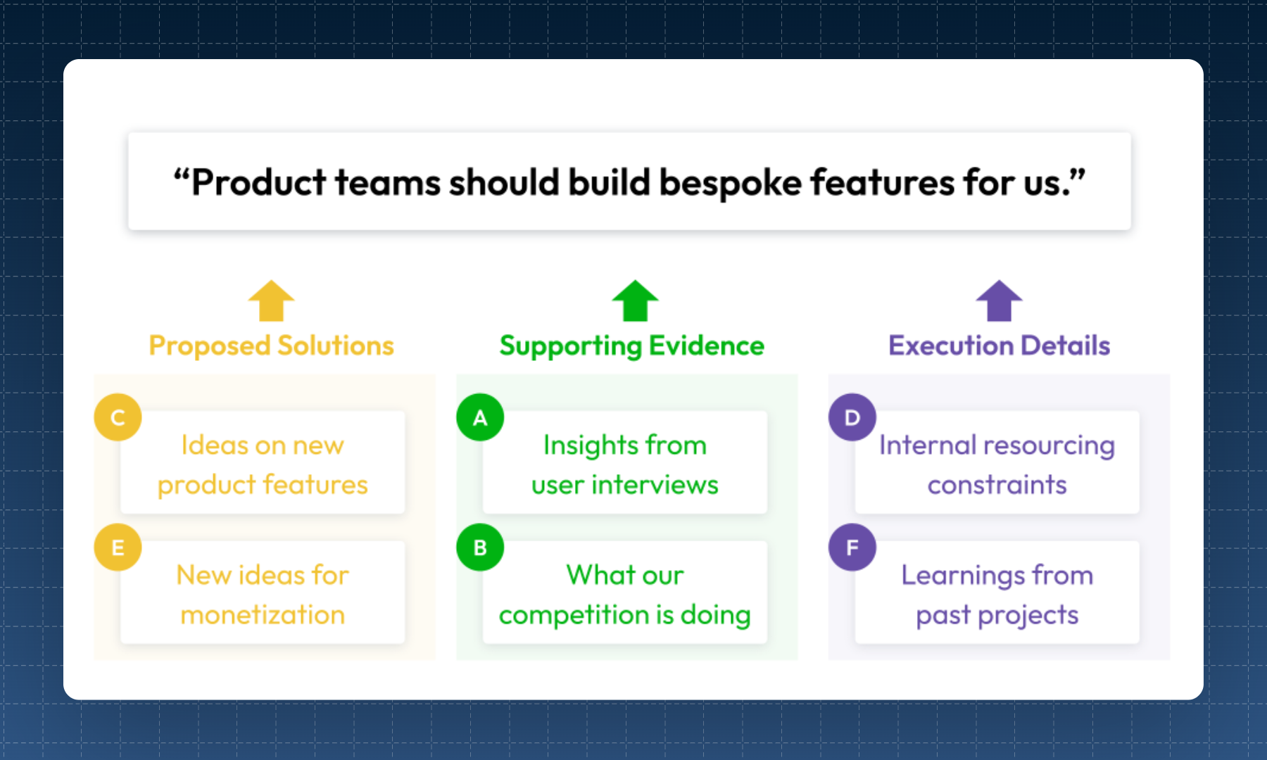 For example, imagine that you're writing a proposal. You're trying to influence your product stakeholders to build bespoke features for your market.